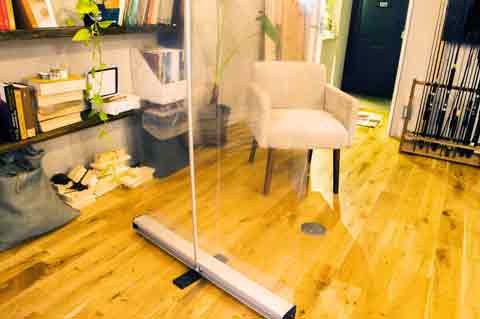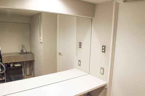 メインスタジオとは別で控え室や機材・荷物の退避場所となるサブスタジオがあります。トイレやキッチンなど普通に生活できる部屋なので、タレント様の控え室としても十分なものが備えられています。